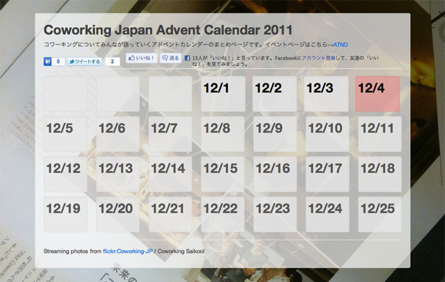 この記事はコワーキング・アドベント・カレンダー2011に参加しています。全ての記事を読むにはこちらのまとめページをどうぞ。コワーキングって何だ?という方にもオススメです。