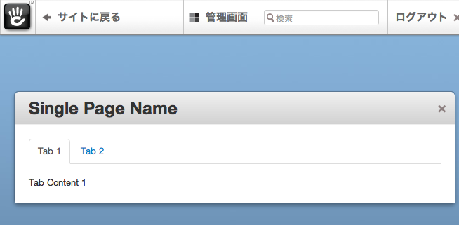 echo Loader::helper('concrete/interface')->tabs($tabs); ここはインターフェース・ヘルパーのtabsメソッドを呼んでいます。concrete5ではこのようにヘルパークラスでアレコレできます。タブの内容はかんたんな配列で指定できます。