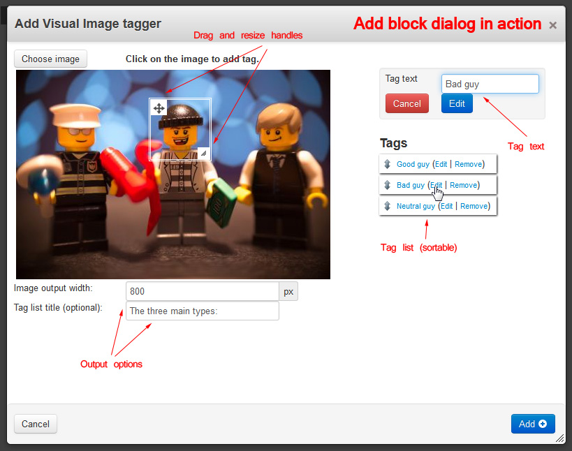 Facebookの画像で顔にタグを設定できるように、画像にタグを設定するためのアドオン。あまり使い道が思いつかないが…