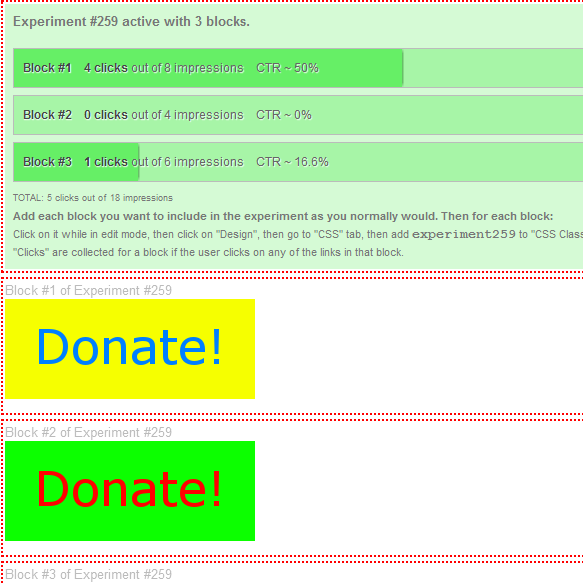 複数のブロックを切り替えてどのデザインがユーザーアクションに結びついたか、いわゆるA/Bテストができる。