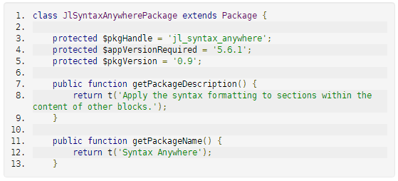 シンタックスハイライトでプログラムコードを表示するブロックは他にもありますが、通常の記事ブロックにも対応したという嬉しいアドオン。