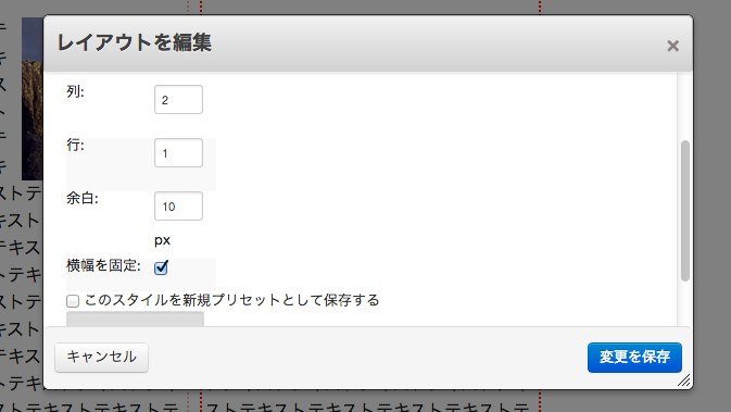 concrete5には「レイアウト」機能があり、編集モード内で編集エリア内を分割することができます。