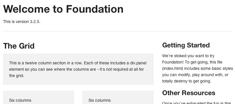 ありゃ、Syntax Error。どうやらバージョン4のFoundationを読み込んでしまっている模様。config.rbの require ‘zurb-foundation’ の前に、バージョンを明示すれば解消する。