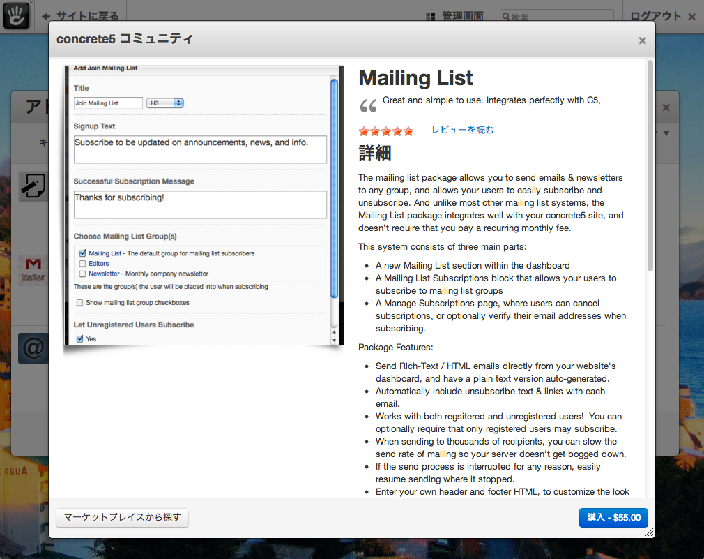 編集モードもチェックした方が何かと良いかも。→[Concrete5]エリア内にブロックがある時にだけ表示する[メモ]