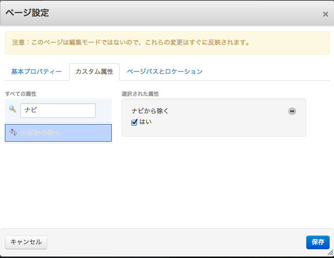 「ナビ上で最初の子ページにリンクする」属性は、ナビゲーション上でリンクが変わるだけですので、ページとしては存在していますので、URLに直接アクセスすれば見えてしまいます。気になる方はこのアドオンを使いましょう。いくつか便利なページ属性が追加されます。属性ハンドルは変更してはいけませんが、属性名は分かりやすい日本語に変えて使いましょう。