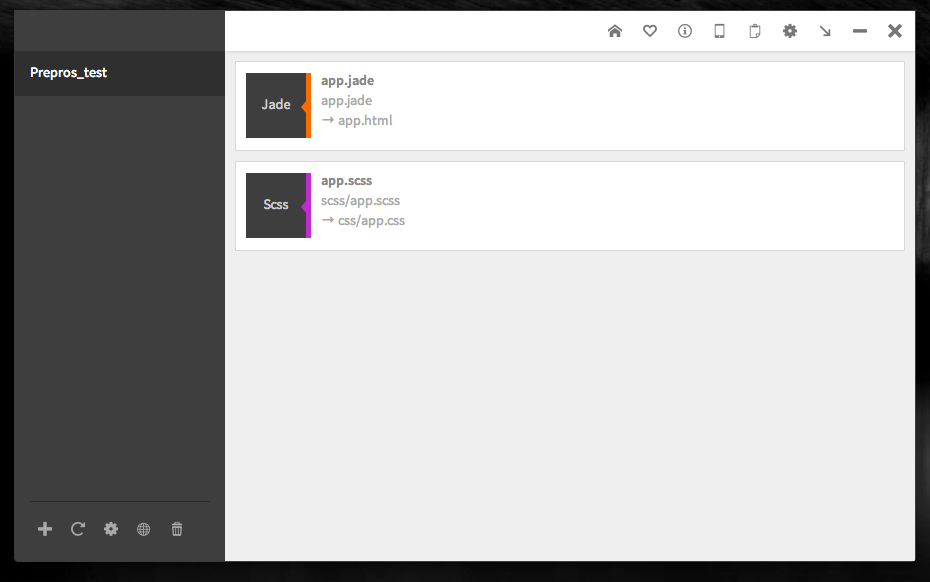 Mac/Win対応。LESS, Sass, CoffeeScript, Jade, Markdownなどをコンパイルする無料アプリ、Prepros