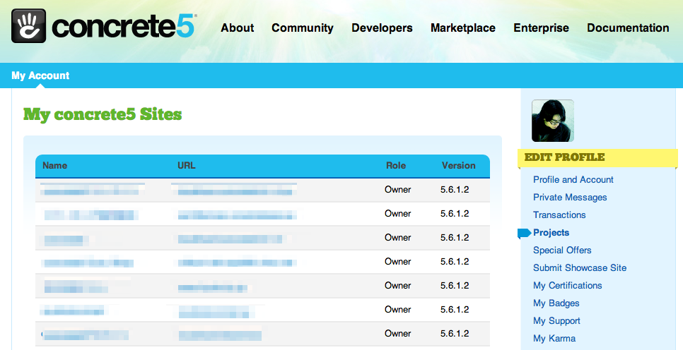 以上でお使いのサイトのコミュニティへの接続が完了し、プロジェクトページが concrete5.org に作成されました。プロジェクトページとは、concrete5サイトとコミュニティの橋渡しとなるものです。あなたのサイトのプロジェクトページは concrete5.org にログインすることでアクセスでき、アドオンやテーマのライセンスを管理することができます。