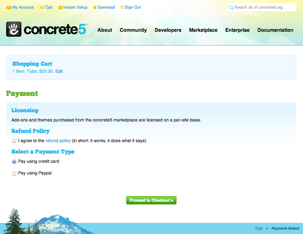 また、concrete5.org ではクレジットカード以外にPaypalで購入することができます。