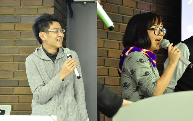 多生さん (左, @tao_s) とイシジマミキさん (右, @woopsdez) のトークも軽妙でした。多生さん楽しそう。