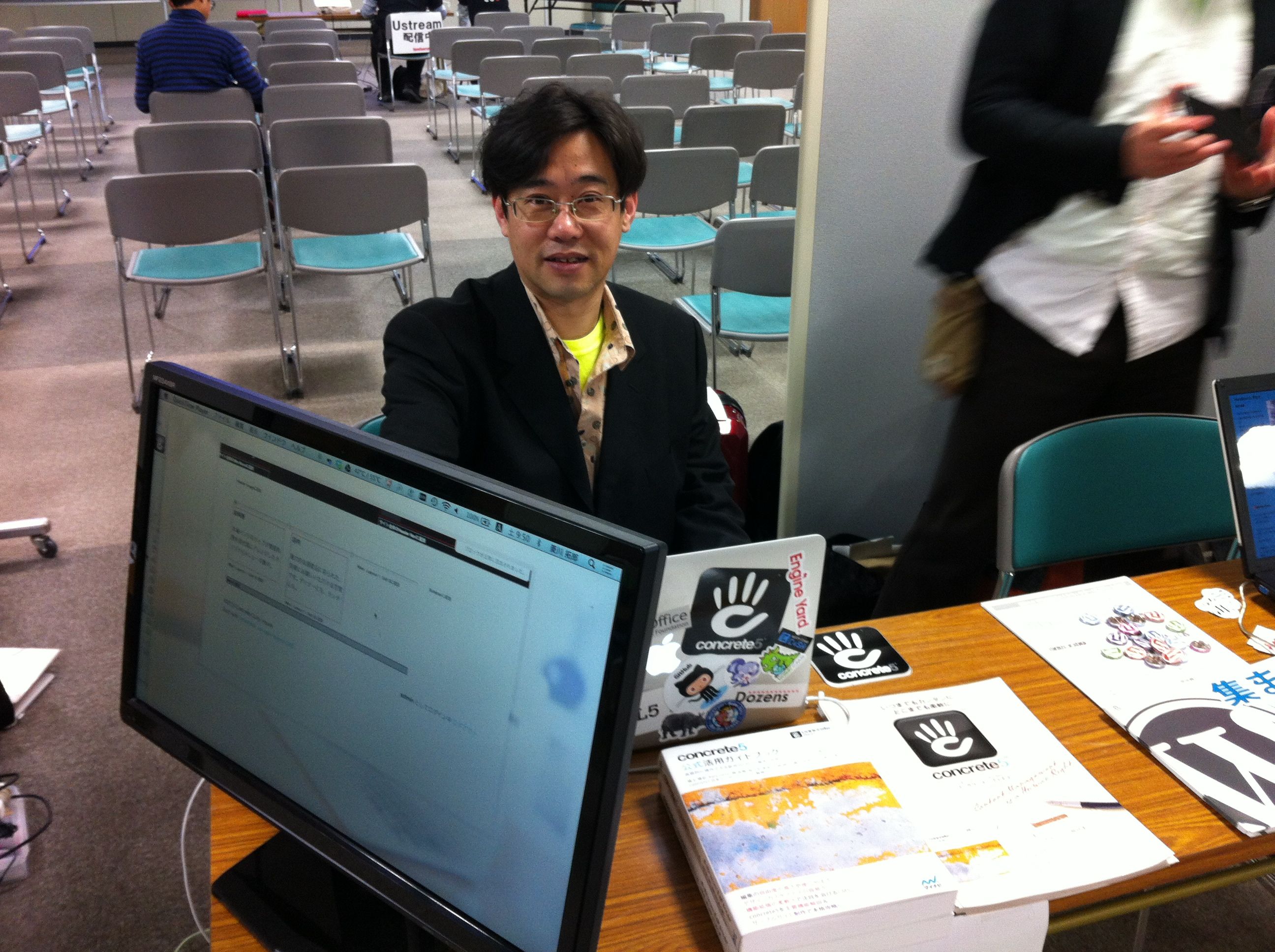 「concrete5がこれから来るって聞いてどんなもんか見に来ました」という方がちらほらブースに来られました。concrete5の噂は走っているのですが、まだまだ使い始めている方は少ないような気がしますね。今後もコミュニティ活動を継続的にやっていくことで東京でも定着していくといいなと思います。