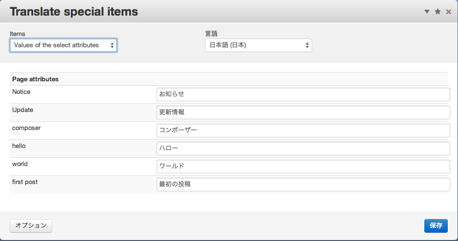 Localizerアドオンがインストールできたら、選択タイプのページ属性の値を登録していきましょう。翻訳表示されますので、登録の際は英語で登録していきます。