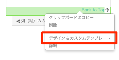 <?php defined('C5_EXECUTE') or die("Access Denied."); ?> <div class="btn-group dropup"> <a href="#top" class="btn btn-default"> <?php echo t('Back to Top'); ?> <span class="caret"></span> </a> </div> 作成するだけで、カスタムテンプレートの選択肢に現れます。