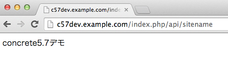 <?php namespace Application\Controller; use Config; class Api extends \Concrete\Core\Controller\Controller { function sitename() { echo Config::get('concrete.site'); } } これで、/api/sitename にアクセスするとconcrete5サイトに設定したサイト名が表示されるようになります。