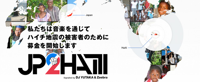 このようなハイチ地震の被害の大きさは地震発生当日からTwitterで様々な情報が共有され、日本からも支援金を贈ろうという声が大きくなりました。その中からDJ YUTAKA、ZEEBRAがTwitter上で呼び掛けた「JP2HAITI」プロジェクトは、チャリティソングの売上をハイチに寄付するという目的で立ち上がり、Twitter上で続々と賛同者が参加を表明しました。